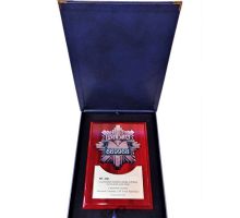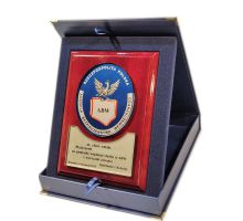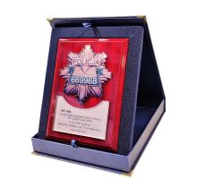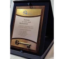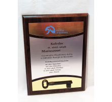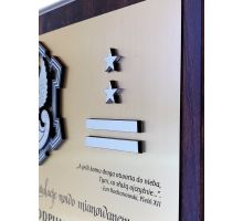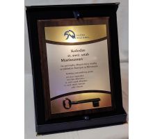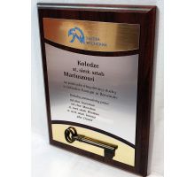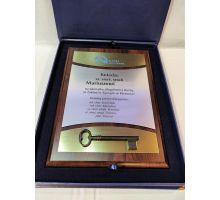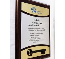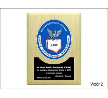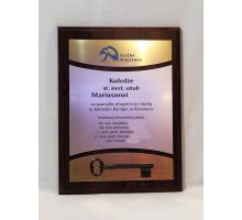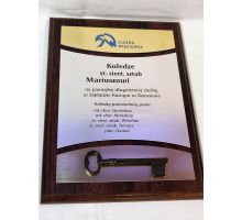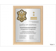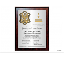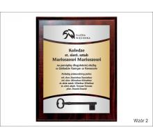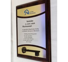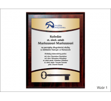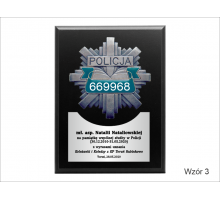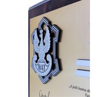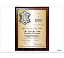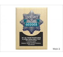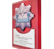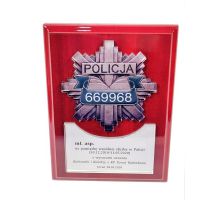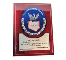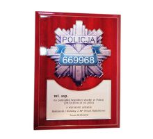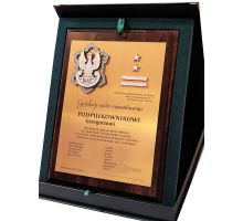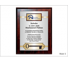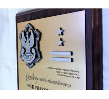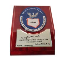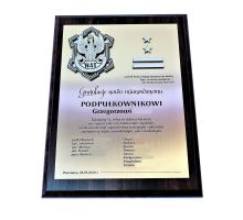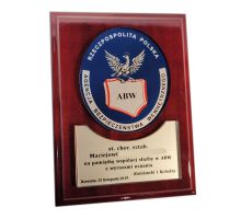 - z laminatu z wygrawerowaną dedykacją i podciętym miejscem na odznakę,