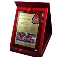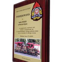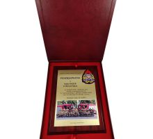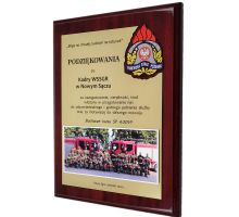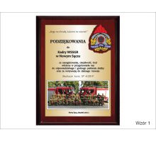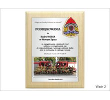 Dyplom drewniany jako ryngraf na pamiątkę wspólnej służby w postaci dyplomu na lakierowanym podkładzie, składający się: