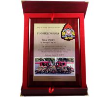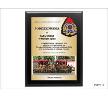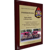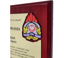 - z umieszczonej pod odznaką bezbarwnej pleksi z nadrukiem pamiątkowej dedykacji,