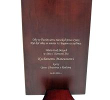 Grawer dedykacji wykonany jest bezpośrednio w drewnie lub na osobnej dołączonej tabliczce.