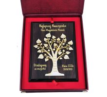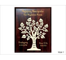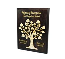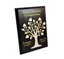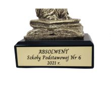Na cokole statuetki wykonany jest pamiątkowy grawer dedykacji z podziękowaniem dla Nauczyciela.