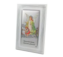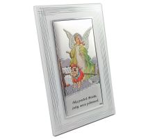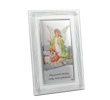 Aniołek nad śpiącym dzieckiem - srebrny obrazek 82109