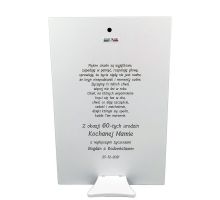 Na obrazku można wygrawerować indywidualną pamiątkową dedykację z dowolną treścią.