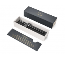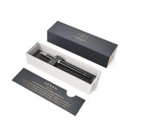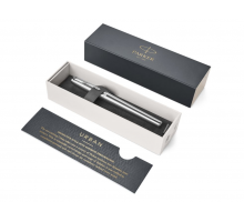 Korpus długopisu Parker Urban Core London Cab Black CT wykonano z mosiądzu pokrytego połyskującym, czarnym lakierem. Sekcja przednia wykonana z połyskującego, czarnego materiału polimerowego. Całość wieńczą pierścienie ze stali nierdzewnej z wykończeniami platerowanymi chromem.