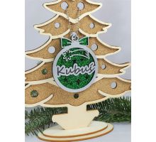 Do bombki można dodatkowo zamówić ozdobny stojaczek w kształcie choinki.