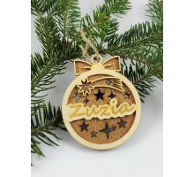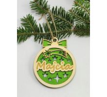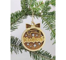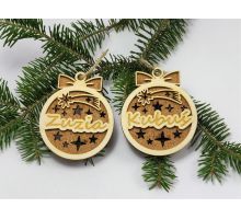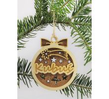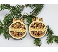 Bombka wykonana jest z dwóch rodzajów materiałów - brokatowej pleksi i laminatu grawerskiego.