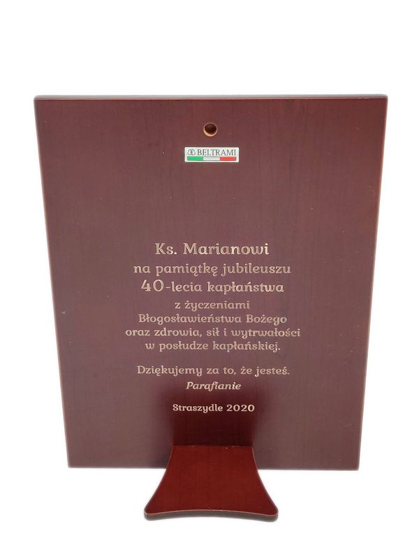 Grawer dedykacji wykonany jest bezpośrednio na drewnie lub też na dołączonej tabliczce.