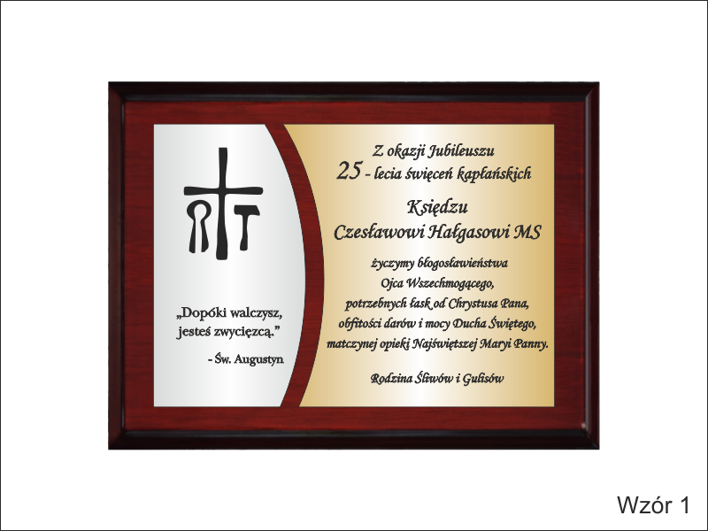Istnieje możliwość wykonania pamiątki wg indywidualnych ustaleń i projektu lub wg jednego z wzorów.