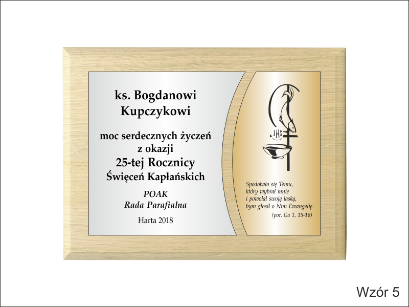 - z laminatów w dwóch odcieniach z wygrawerowaną dedykacją i ozdobną grafiką,