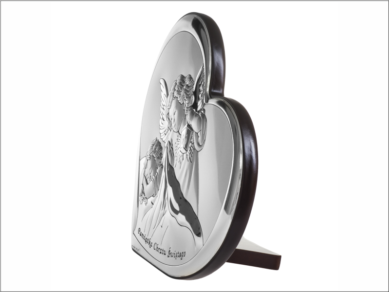 Srebrny Obrazek "Aniołek z latarenką z podpisem w sercu 6449".