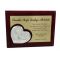 Pamiątka Chrztu Świętego w formie wyjątkowego upominku - srebrnego obrazka z aniołkami w sercu na ciemnym drewnie.