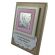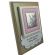 Srebrny obrazek jest kwadratowy, ma wielkość 14 x 14 cm i przedstawia wizerunek Aniołka z latarenką nad śpiącym dzieckiem na różowym materiale i białej drewnianej ramce.