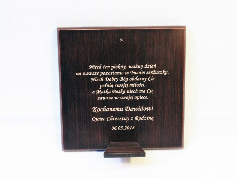 Grawer dedykacji wykonany jest bezpośrednio w drewnie lub na osobnej dołączonej tabliczce.