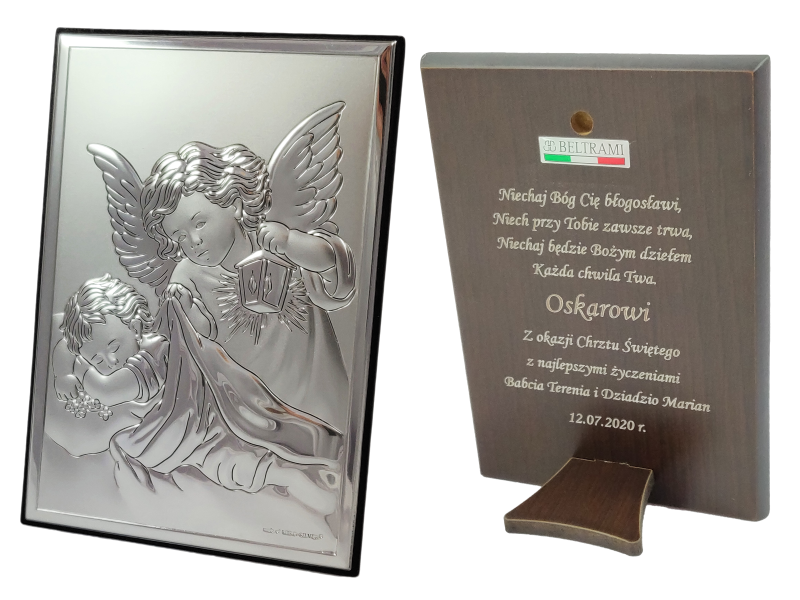 Na srebrnym obrazku możemy wykonać indywidualny grawer dedykacji.