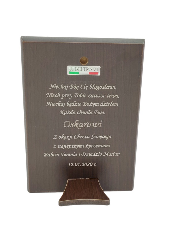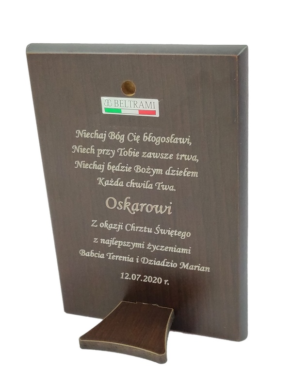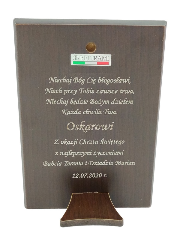 Grawer dedykacji wykonany jest z tyłu obrazka bezpośrednio na drewnie lub na osobnej dołączonej tabliczce.