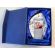 Szkło pakowane jest w ozdobne, kartonowe, wyściełane materiałem, niebieskie etui.
