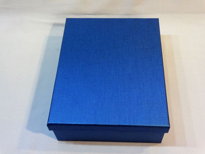 Szkło pakowane jest w ozdobne, kartonowe, wyściełane materiałem, niebieskie etui.