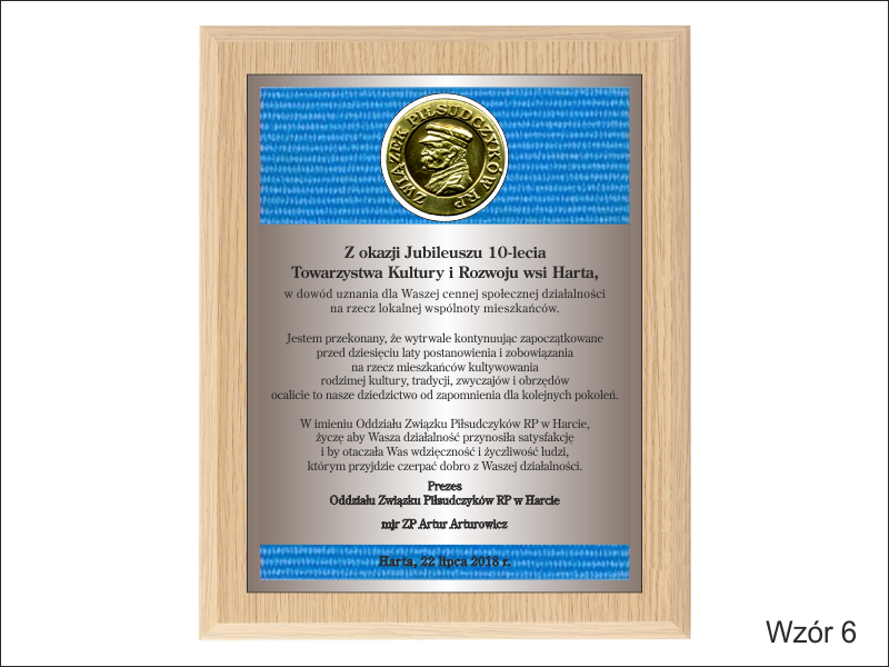 Prezentowany dyplom dedykowany jest jako wyrazy uznania z okazji jubileuszu stowarzyszenia, ale można wykonać go też na inną okoliczność.