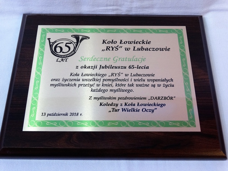 Prezentowany dyplom dedykowany jest jako pamiątka z okazji Jubileuszu Koła Łowieckiego, ale można wykonać go też na inną okoliczność.
