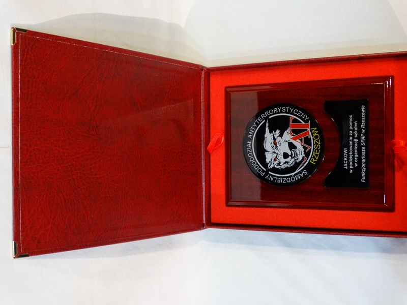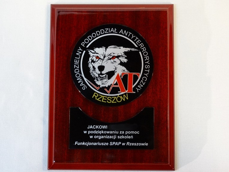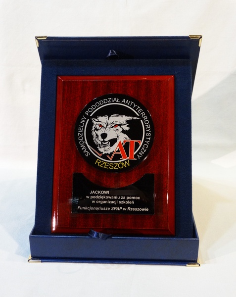- z dodatkowej umieszczonej pod herbem bezbarwnej pleksi z nadrukiem dedykacji oraz