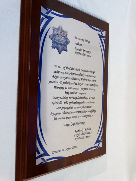 Prezentowany dyplom dedykowany jest jako pamiątka na zakończenie służby czy pożegnanie z pracy, ale można wykonać go też na inną okoliczność.