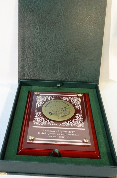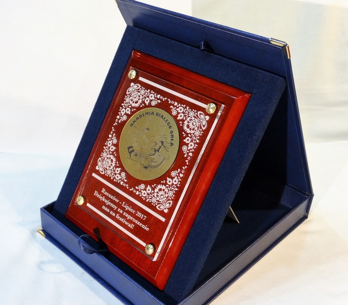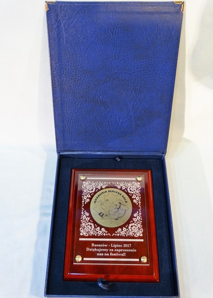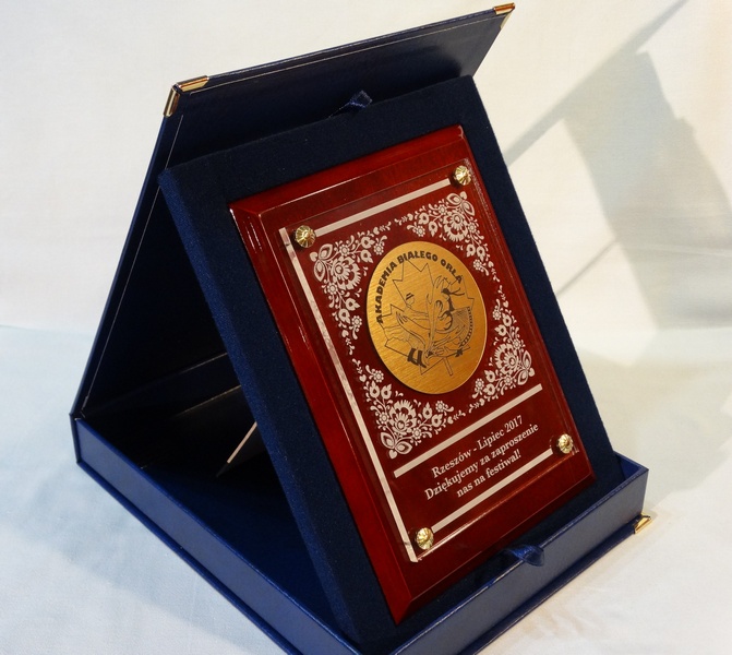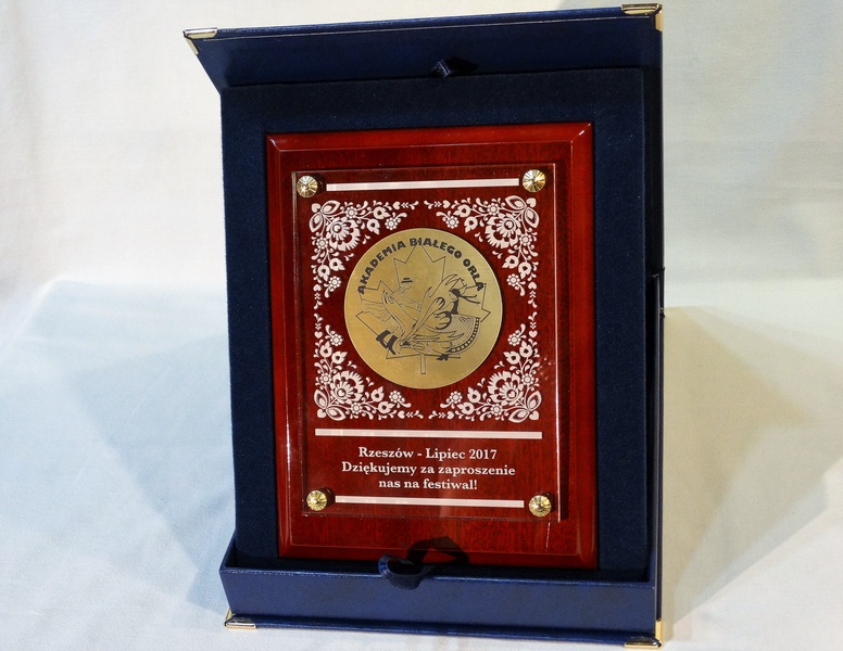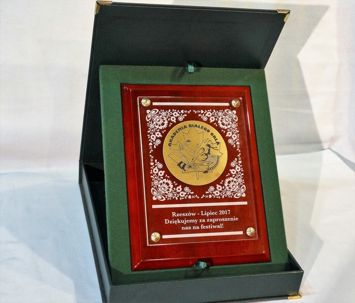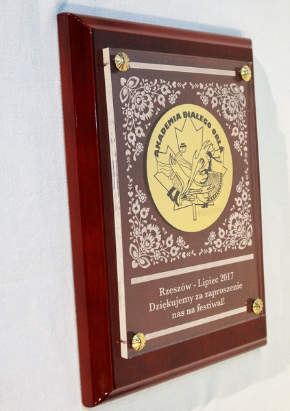 Dyplom okolicznościowy w formie pamiątkowego ryngrafu okolicznościowego, na drewnianym podkładzie, składający się: