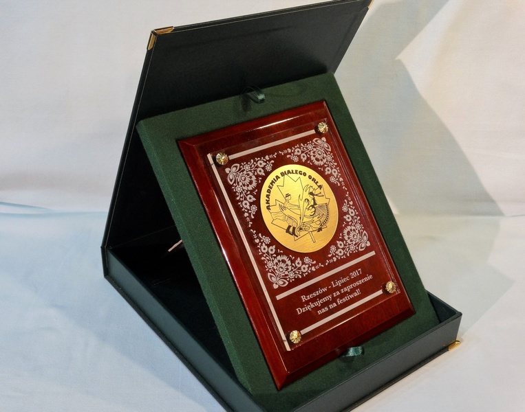 - z bezbarwnej pleksi z grawerem dedykacji i ozdobnych grafik oraz