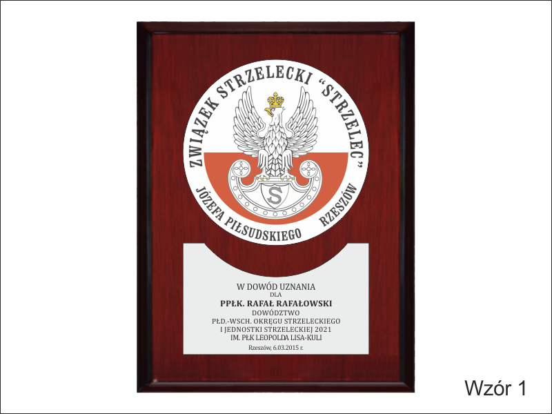 Odznaka / herb i dedykacja z pleksi mogą mieć dowolny kształt.