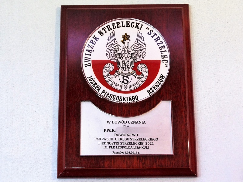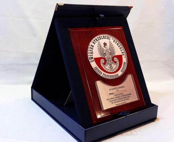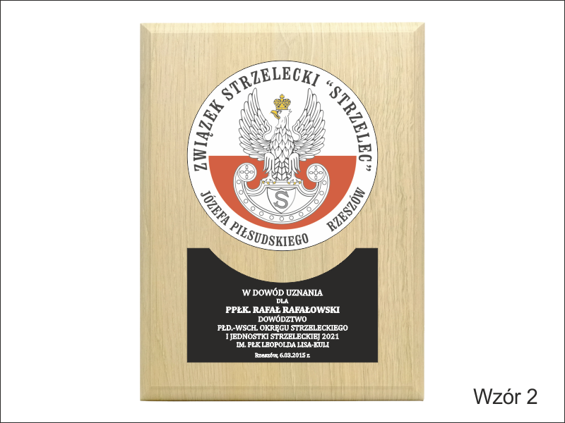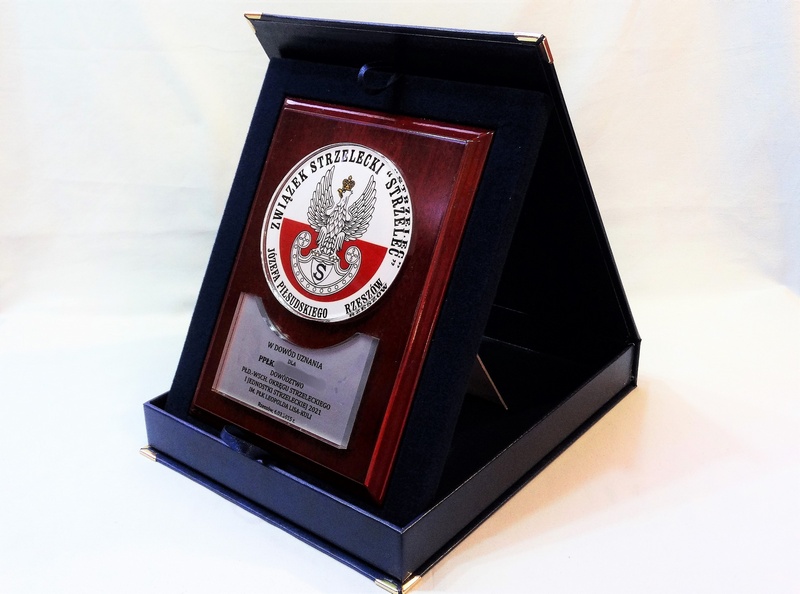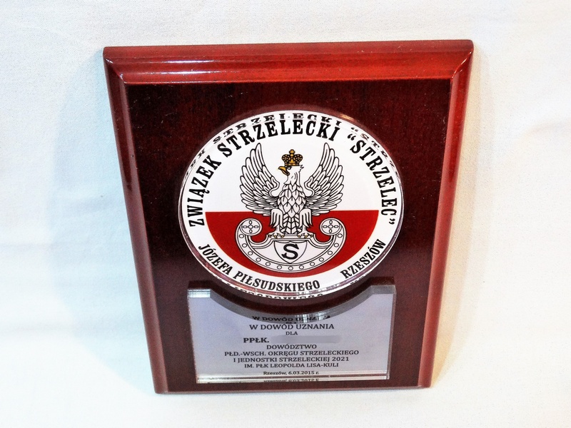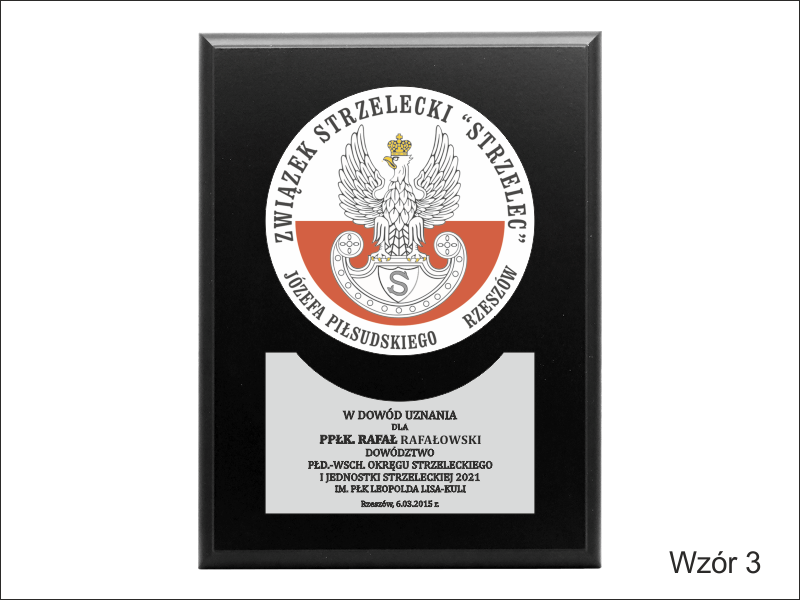- z dodatkowej umieszczonej pod odznaką bezbarwnej pleksi z nadrukiem dedykacji oraz