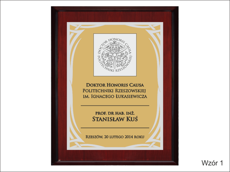 - z dwóch rodzajów laminatów - srebrnego i złotego - z wygrawerowaną dedykacją oraz