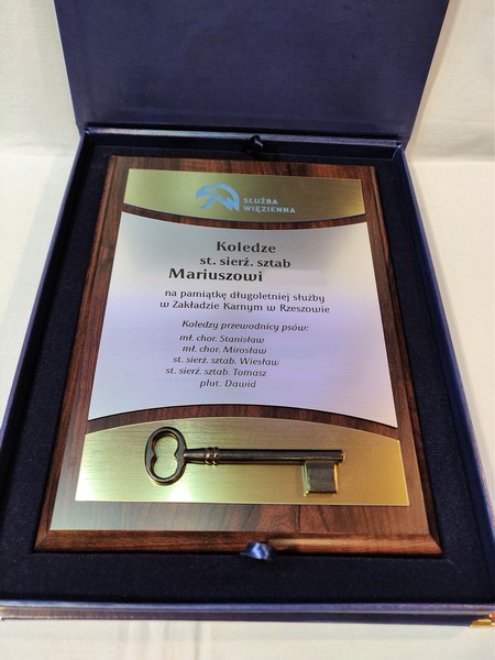 - z laminatów grawerskich (srebrnego, złotego) z grawerowaną dedykacją,