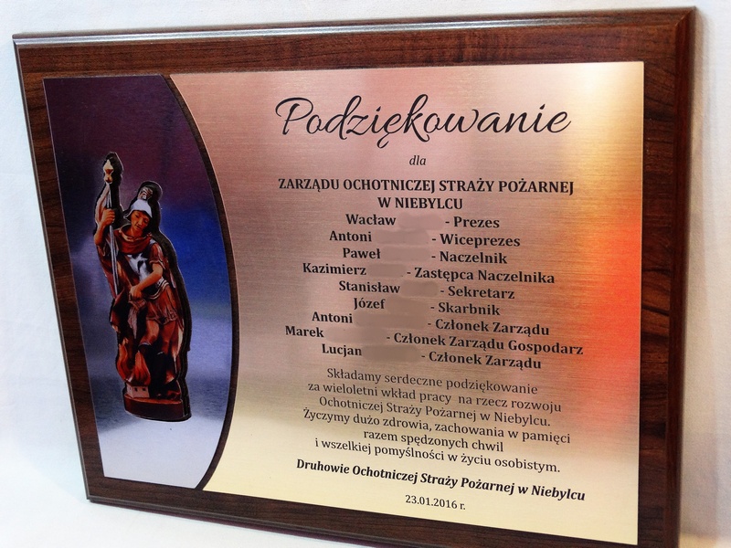 - z dopasowanych do siebie laminatów lub blach z wygrawerowaną lub nadrukowaną dedykacją,