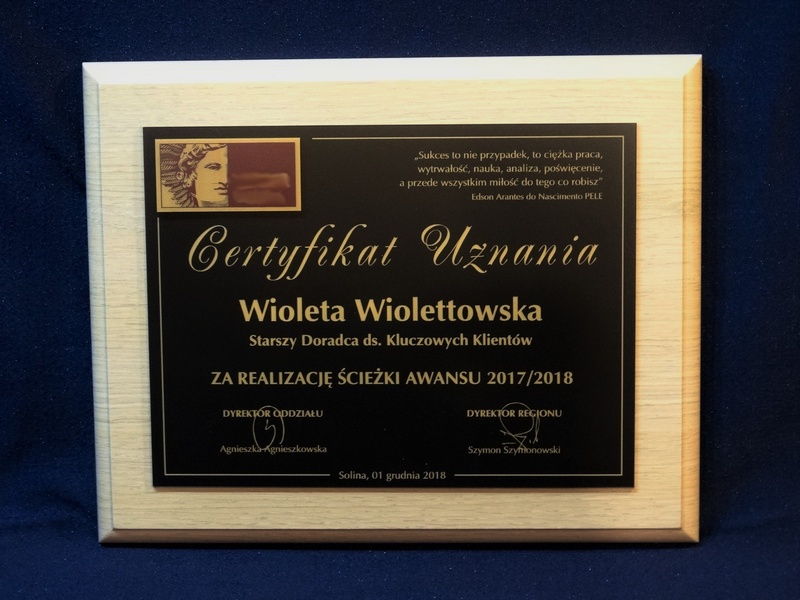 - z blaszki z nadrukiem lub laminatów z grawerem dedykacji, herbu, loga