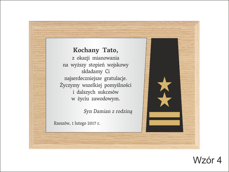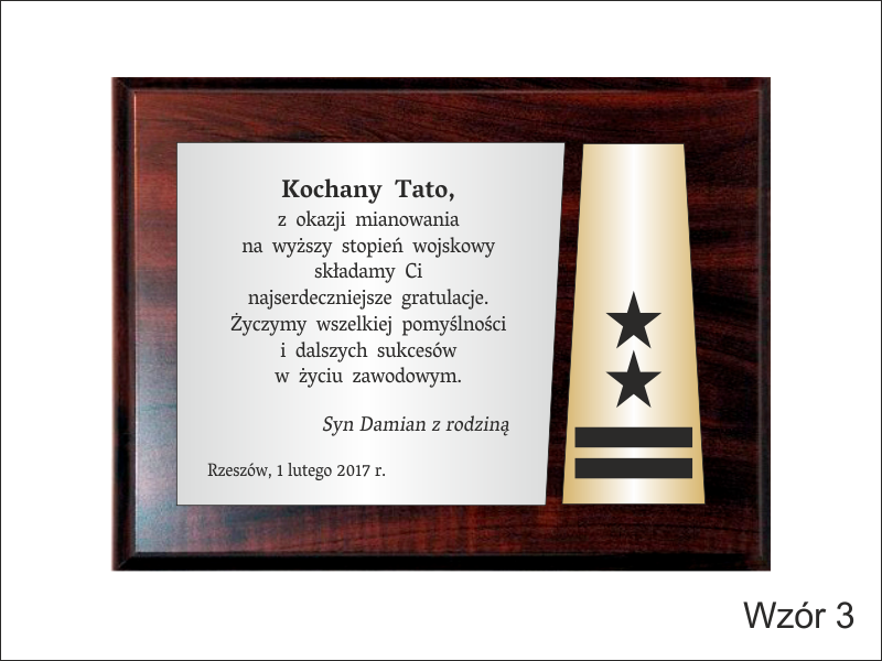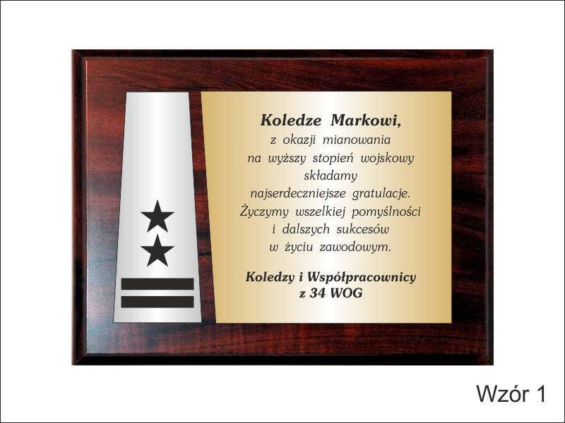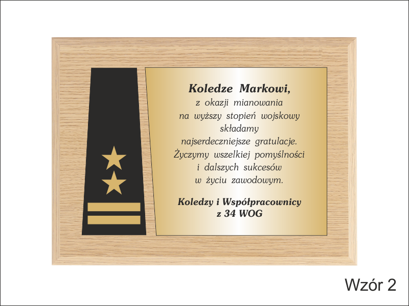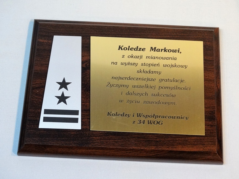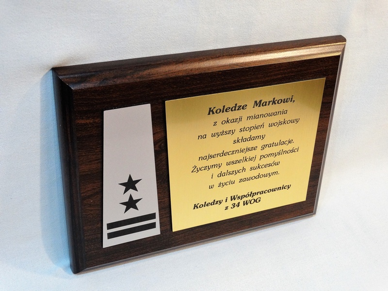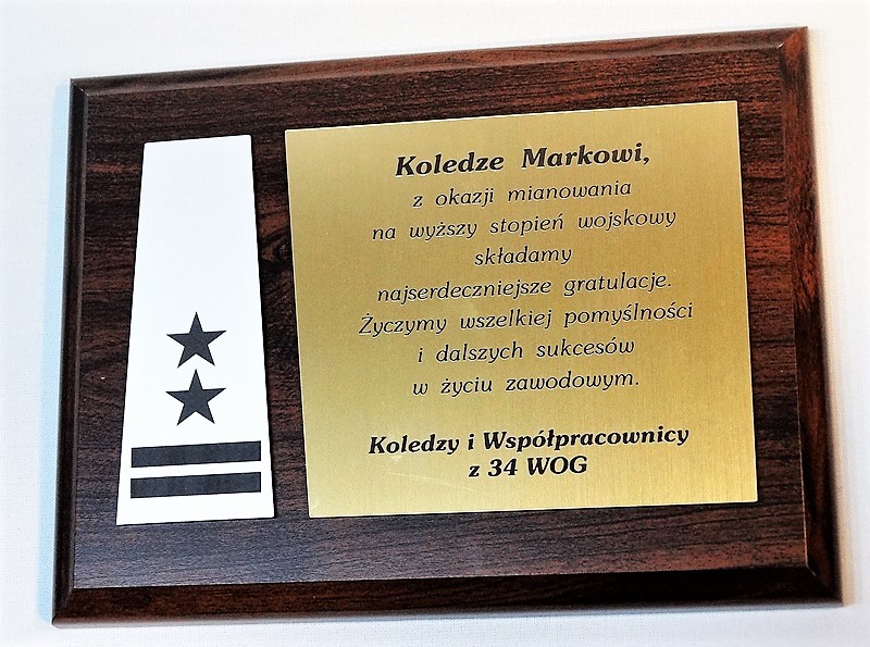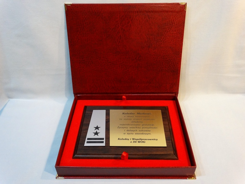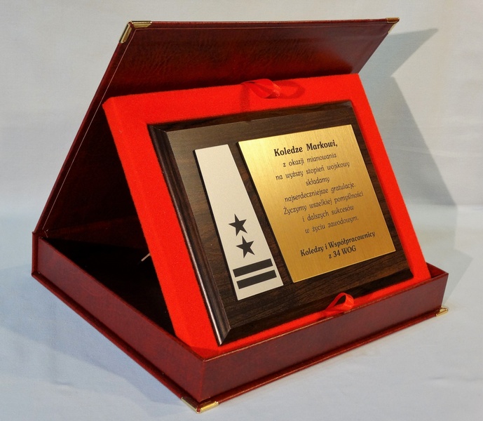 Dyplom drewniany złożony na standardowym podkładzie jako Gratulacje z okazji Awansu.