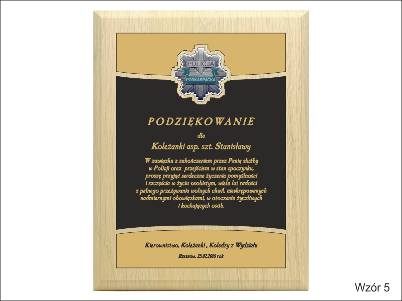 Prezentowany dyplom dedykowany jest jako pamiątka na zakończenie służby czy pożegnanie z pracy, ale można wykonać go też na inną okoliczność.