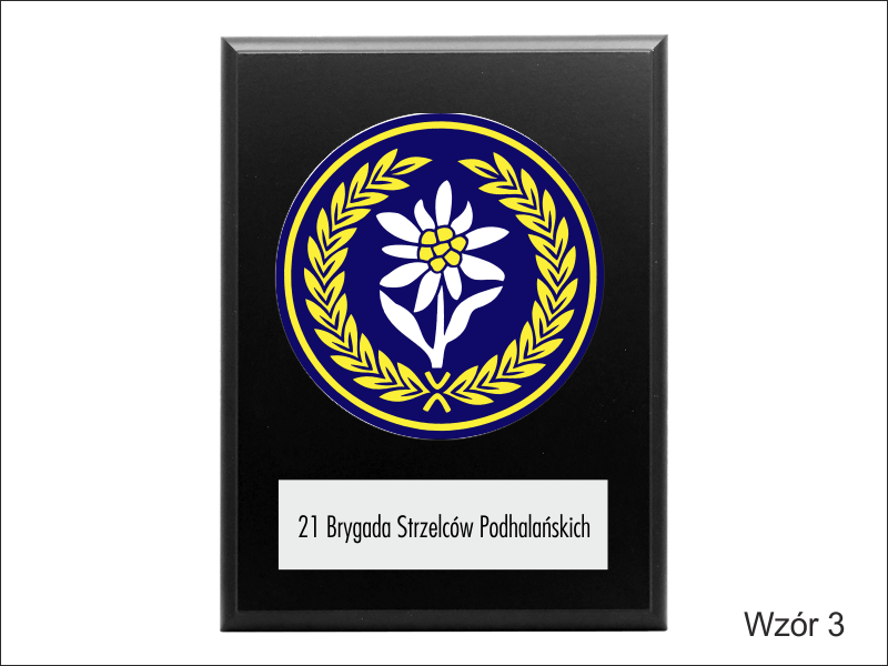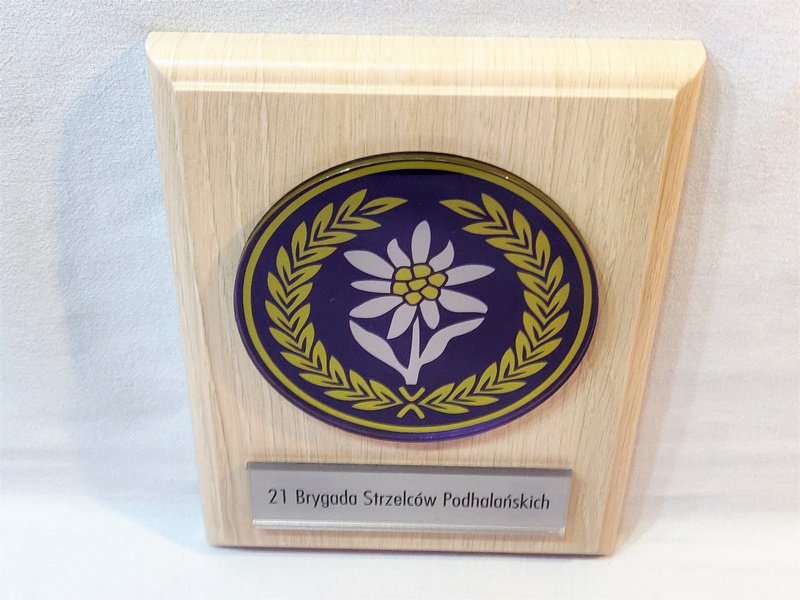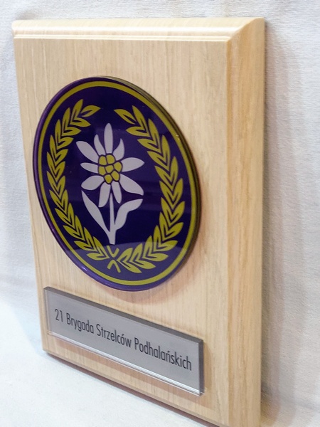 Odznaka / herb i dedykacja z pleksi mogą mieć dowolny kształt.