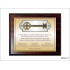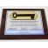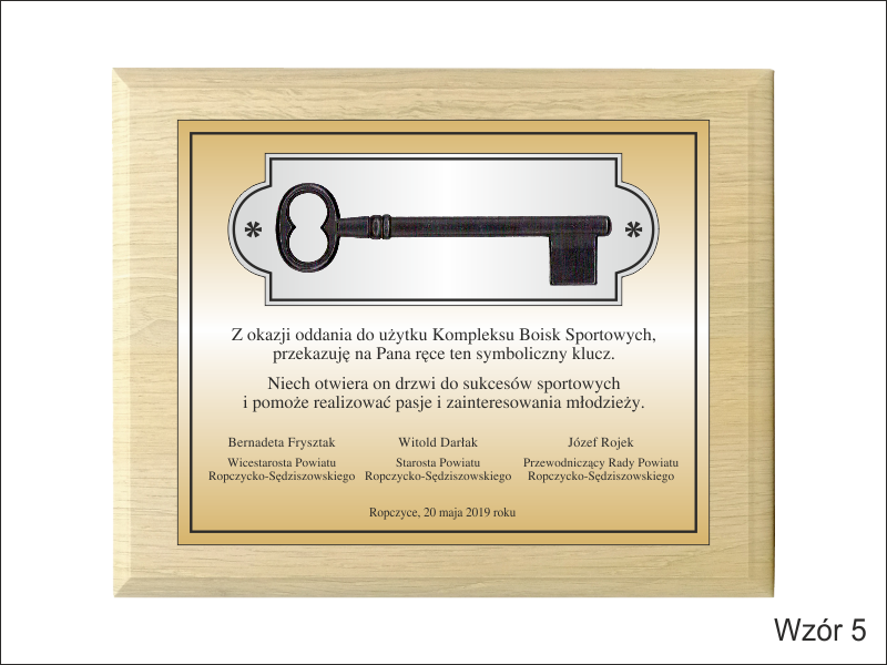 Złożony dyplom okolicznościowy z kluczem, na standardowym drewnianym podkładzie, składający się: