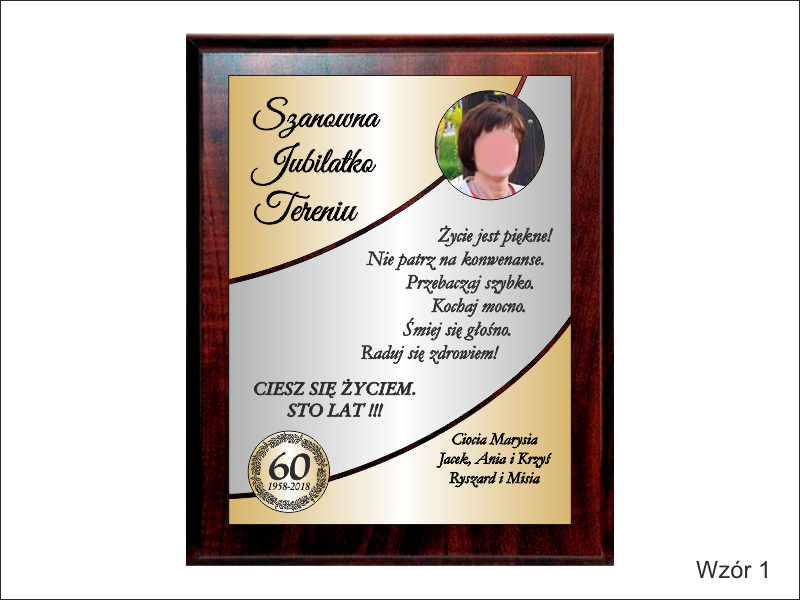 Istnieje możliwość wykonania dedykacji wg indywidualnych ustaleń i projektu uzgodnionego z klientem lub wg jednego z wzorów.