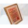 Blaszka umieszczona jest za szklaną szybką w drewnianej malowanej na kolor złoty ramie.