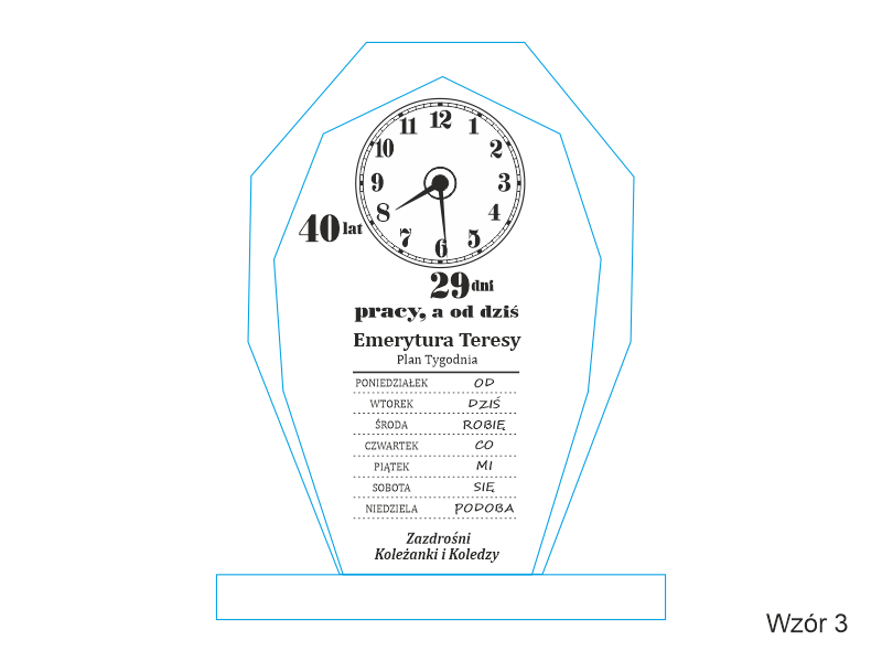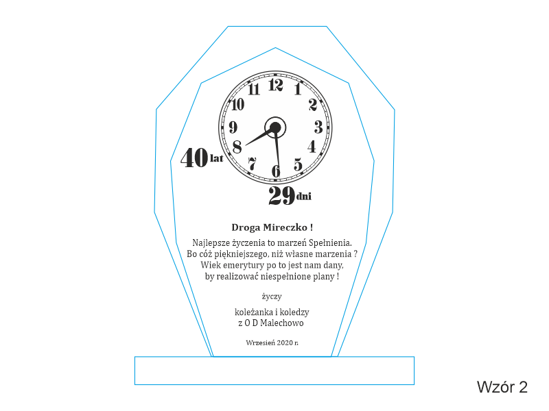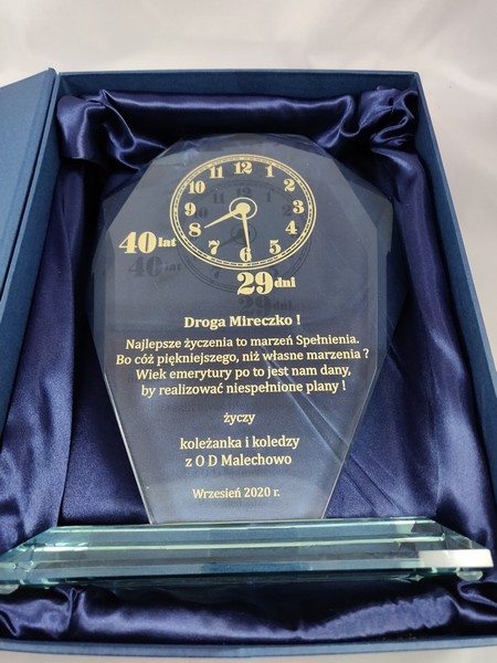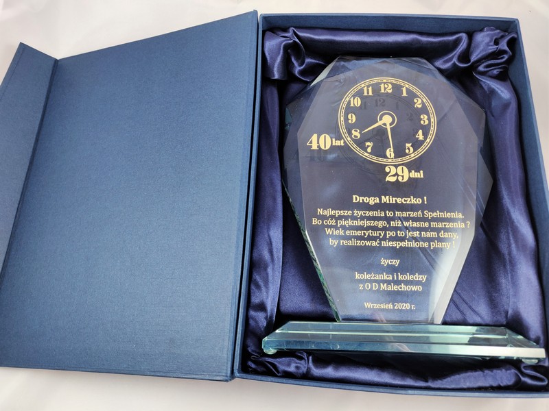 Prezentowana pamiątka dedykowana jest z okazji emerytury, ale można wykonać ją także na inne okazje i uroczystości.
