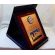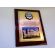 Pamiątkowy dyplom z okazji zakończenia służby i przejścia na emeryturę w postaci dyplomu drewnianego złożonego na lakierowanym drewnianym podkładzie.