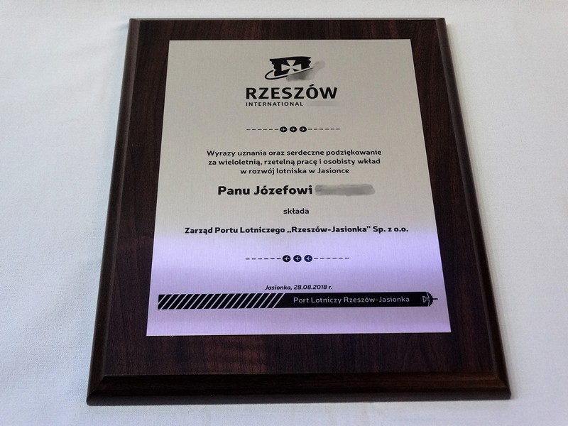 Dedykacja, grafiki, zdjęcia oraz logotypy nadrukowane są.na srebrnej blaszce aluminiowej.