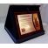Na drewnianym podkładzie umieszczone są dopasowane do siebie dwa rodzaje laminatów - srebrny i złoty - z grawerem dedykacji.
