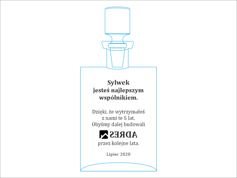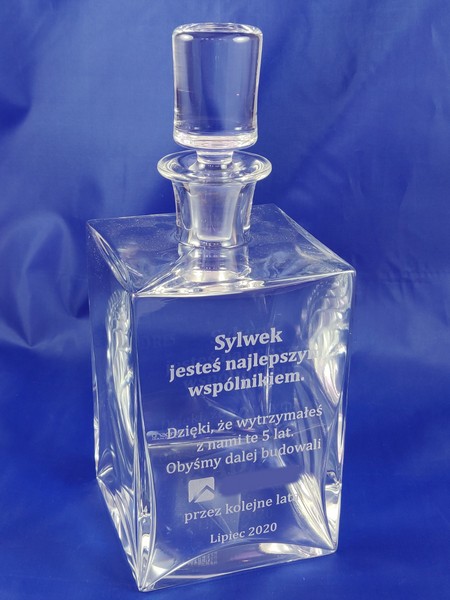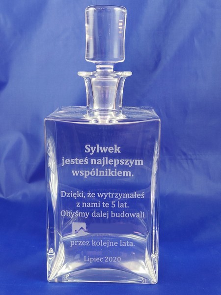 Na karafce wykonany jest grawer okolicznośćiowej dedykacji z podziękowaniem za współpracę.