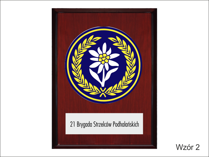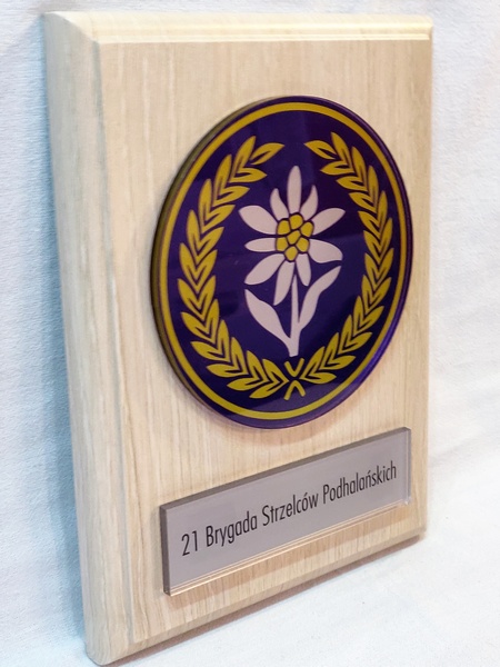 Odznaka / herb i dedykacja z pleksi mogą mieć dowolny kształt.