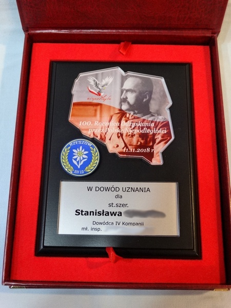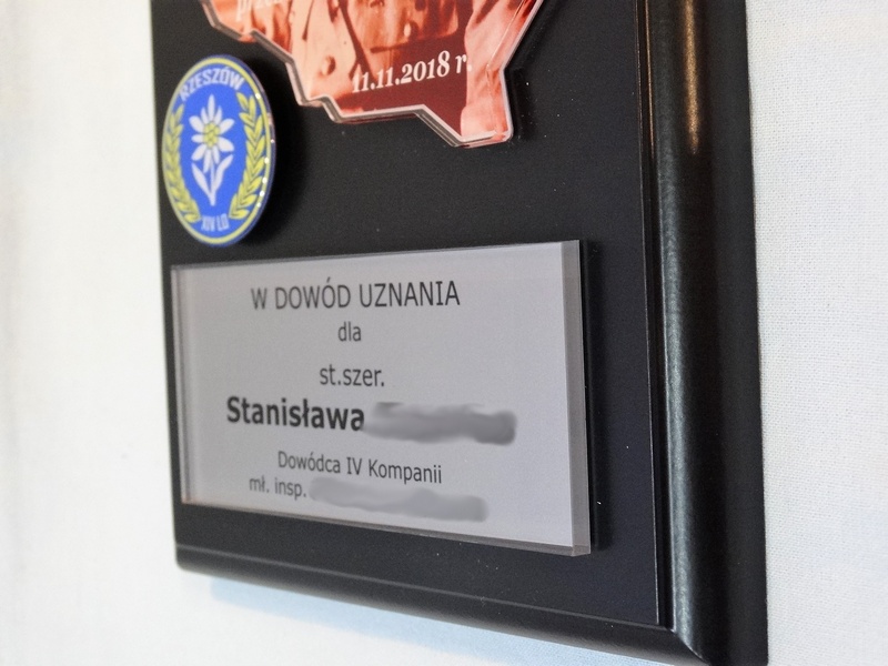 Mapa / odznaka / herb i dedykacja z pleksi mogą mieć dowolny kształt.
