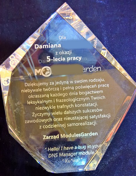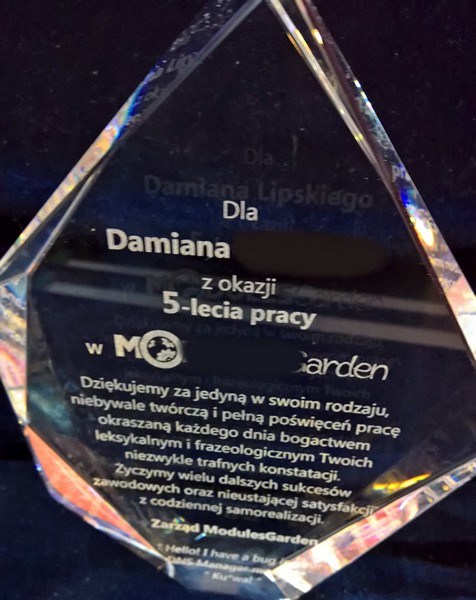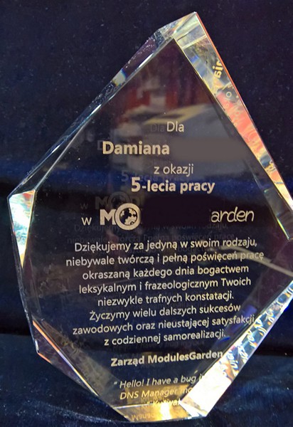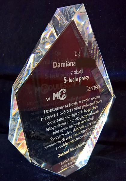 Można także wykonać podziękowanie za "pracę" na innym modelu statuetki szklanej.