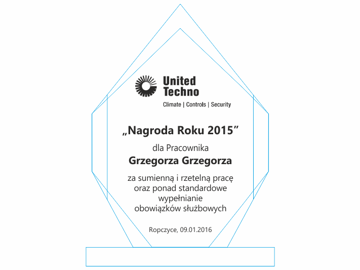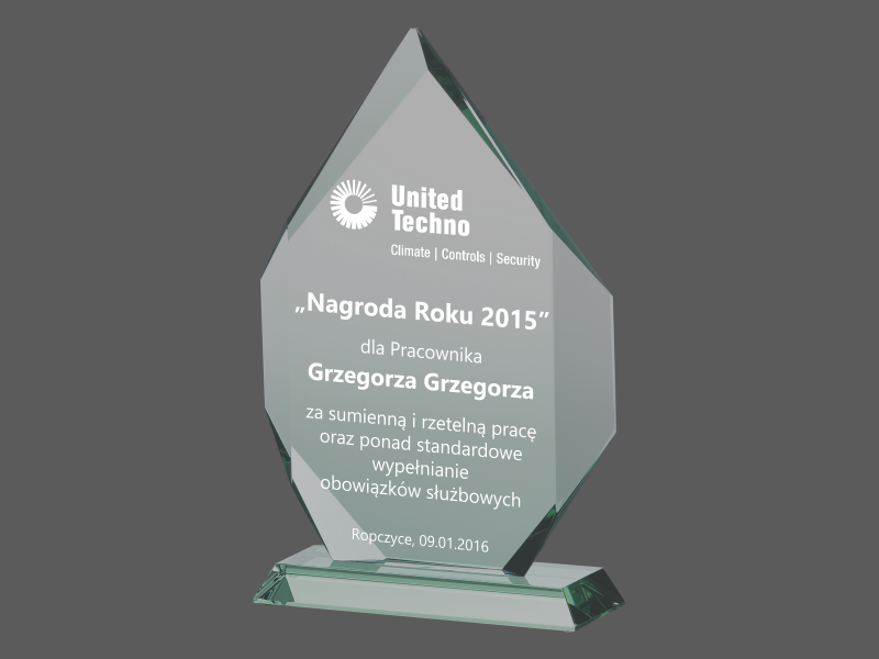 Można wykonać pamiątkową nagrodę dla "najlepszego pracownika" także na innym modelu statuetki szklanej.