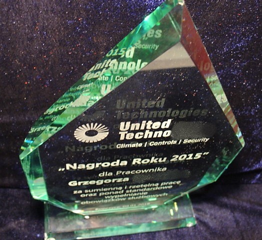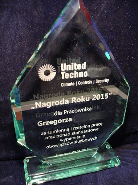 z grawerem dedykacji, grafik lub loga jako pamiątkowa nagroda dla "najlepszego pracownika".