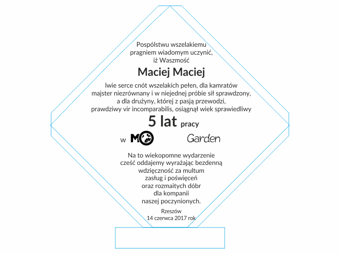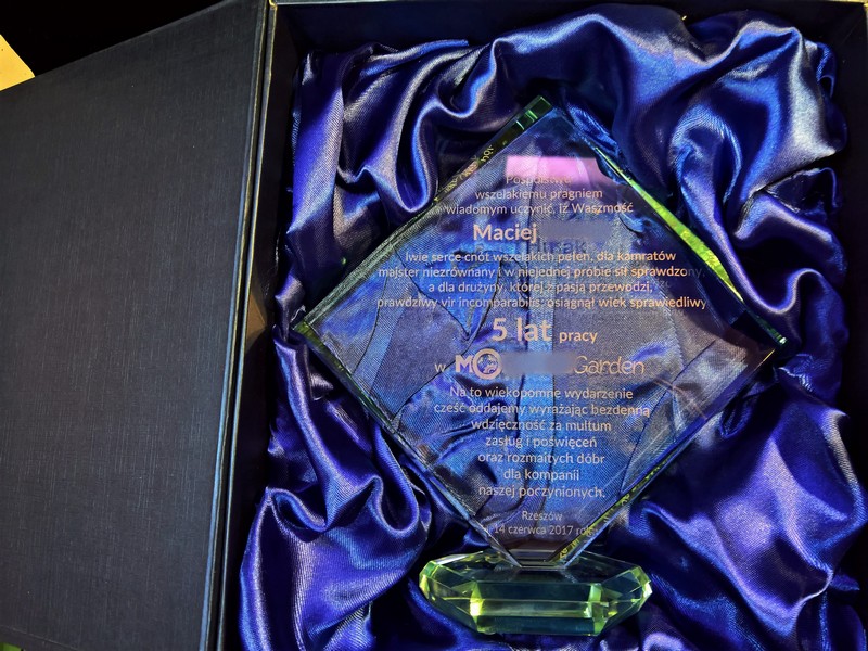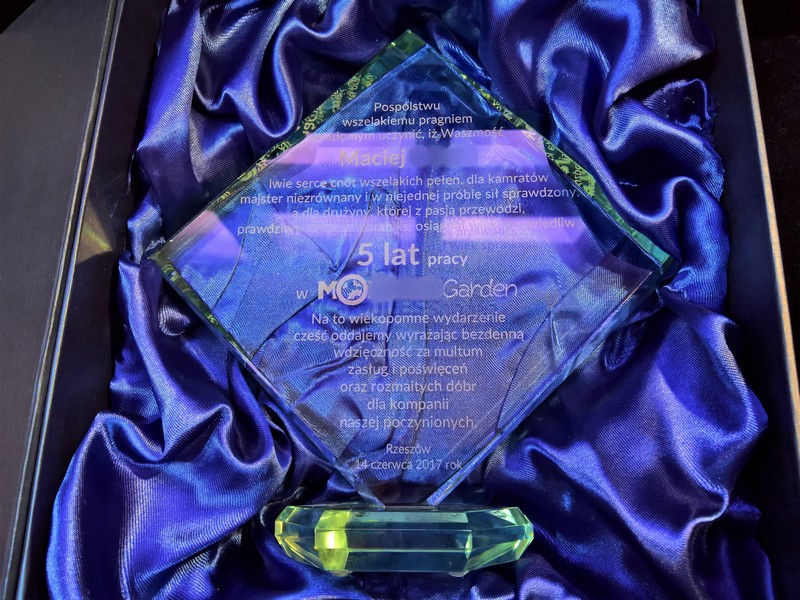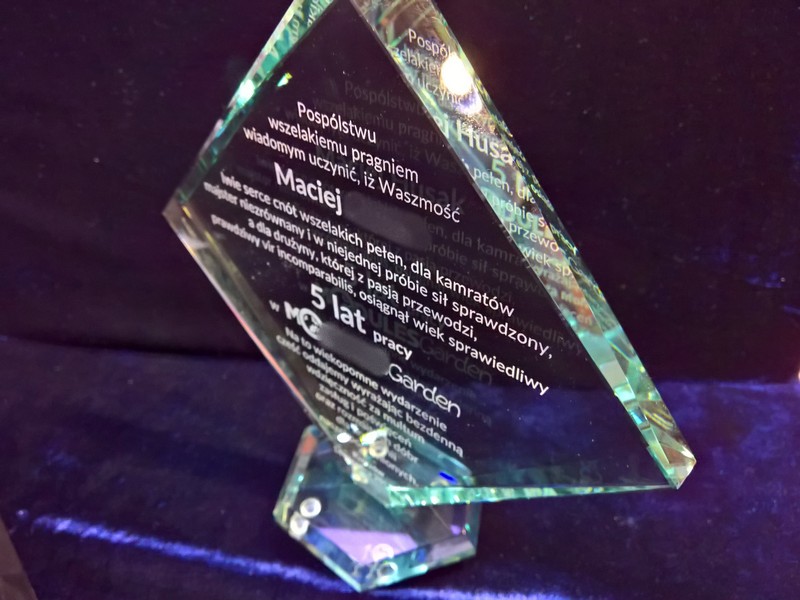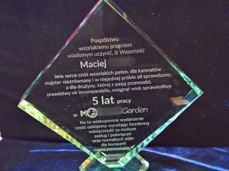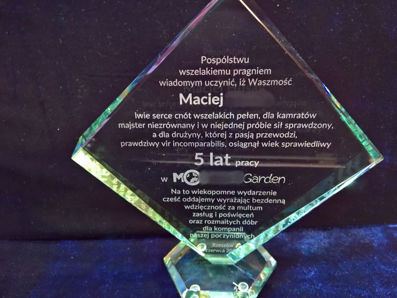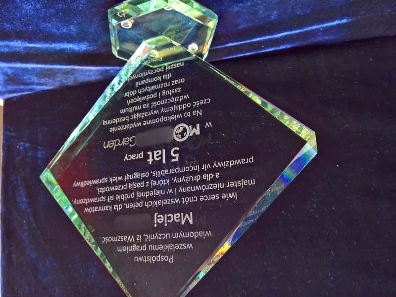 Można także wykonać pamiątkę za staż "pracy" na innym modelu statuetki szklanej.